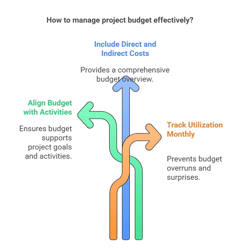 E. Align spending with activities by tracking your budget utilization according to the established plan and guidelines. Both underspending and overspending can be detrimental, as they indicate poor planning.